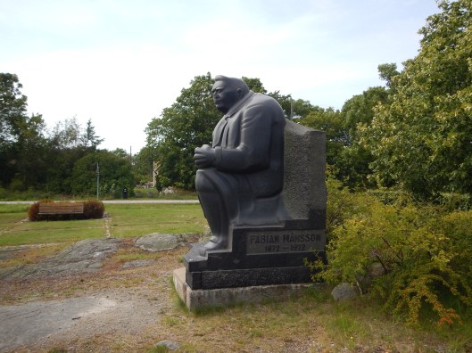 Alldeles utanför restaurangens tomt sitter Fabian Månsson han är begravd på en enskild begravningsplats på ön och eftersom detta skall vara hans gravmonument måste det väl vara här. Fabian Månsson är känd som en aktiv vänster-socialdemokratisk politiker, redaktör och författare men han gjorde mycket annat också.