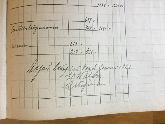 Ytterligare en sak som intresserade mig, en loggbok över utförda lotsningar under året 1922. Det är underskrivet av min morfar H W Åberg, Lotsförman.