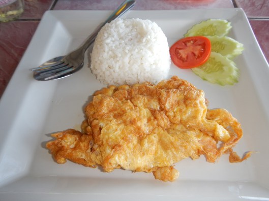 Jag glömde bort att det även är friterad småmajs, sparris och lök eftersom det inte står i menyn, vilket gör det hela till en stor portion. Tog även kokt ris 15THB hälften blev över kan jag säga.