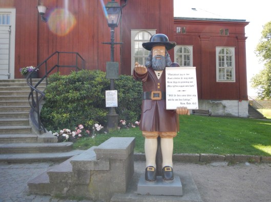 Amiralitetskyrkan är en mycket gammal kyrka och uppfördes år 1685 vilket betyder att den bara är fem år yngre än själva staden. Det var meningen att den skulle byggas om till en stenkyrka så småningom men detta gjordes aldrig. Vilket var tur för denna lilla träkyrka är väldigt vacker. Kyrkan är fortfarande i bruk och det hålls gudstjänster, konserter med mera där. Det är en av turister mycket fotograferad kyrka, alla vill ha ett foto när de står på kyrktrappan och lägger en slant i hans huvudMen oj då, när jag gick ut såg jag dubbelt eller kanske inte. Detta är den gamla Rosenbom. Lite kraftig i dragen och lite mer av ålder tärd, ”kyrkhallen” är numera hans hem.