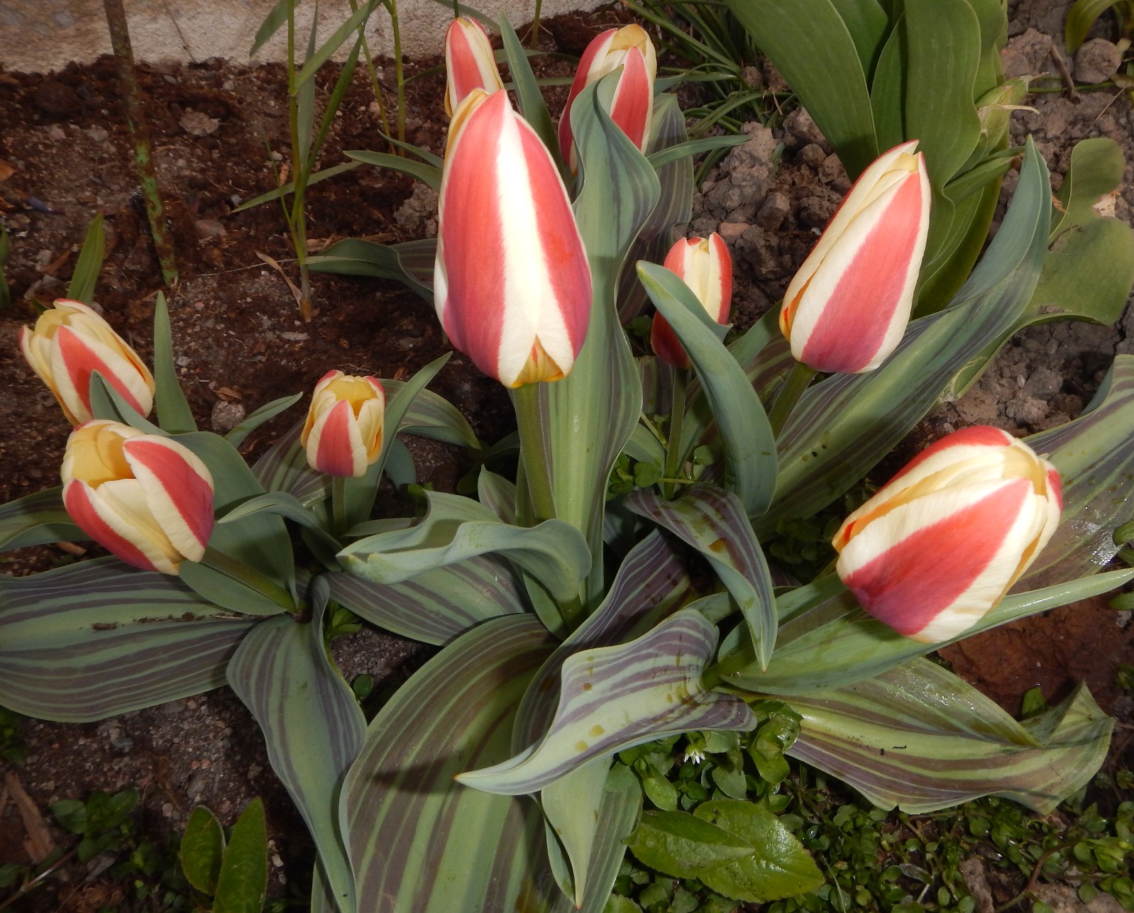 Förra våren skrev jag, gula, röda ska dom glöda, tulpaner från Amsterdam, dessa är en blandning av båda. Låga vit/röda i stället för gul/röda, kanske en form av halvfabrikat detta också. Så här blev i alla fall resultatet av ett litet paket lökar jag köpte där och planterade hemma. Sedan är det alla de andra lökarna men jag tror de kommer att stanna nere i jorden. Man kan inte lyckas med allt.