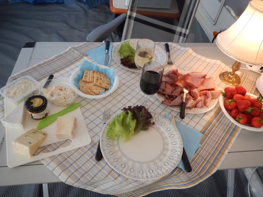 Vilken tur att vi köpte den här kylboxen, det är bara ett aber, så länge den är kopplad i bilen är temperaturen OK men när den står i förtältet går temperaturen upp till 15 grader. Inte bra, dessutom står det i instruktionen att man inte bör köra den mer än tio timmar åt gången. Problemet är ju att instruktionen ligger i lådan och den öppnar man inte förrän efter man tagit hem den. Fördelen med boxen är att man kan ha varm mat i den men vad hjälper det oss och våra smör o mjölkprodukter. För bra för att vara sant alltså.
