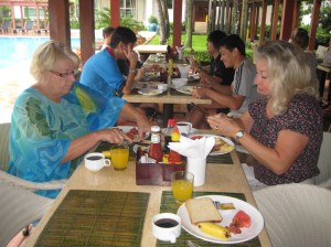 Den här gången valde vi att åka buss direkt från Bangkoks flygplats, Suvarnabhumi till Hua Hin. Vi hade fått tips om att man kunde boka och reservera sittplats direkt hemifrån på nätet hos Bells Travel. Priset var 315 THB per person, med andra ord väldigt billigt. Eftersom Rolf ändå skulle stanna till i Hua Hin för att besöka Time Optic, behövde nya glasögon då han satt sig på de gamla. De tålde inte denna tyngd utan klövs i många bitar.