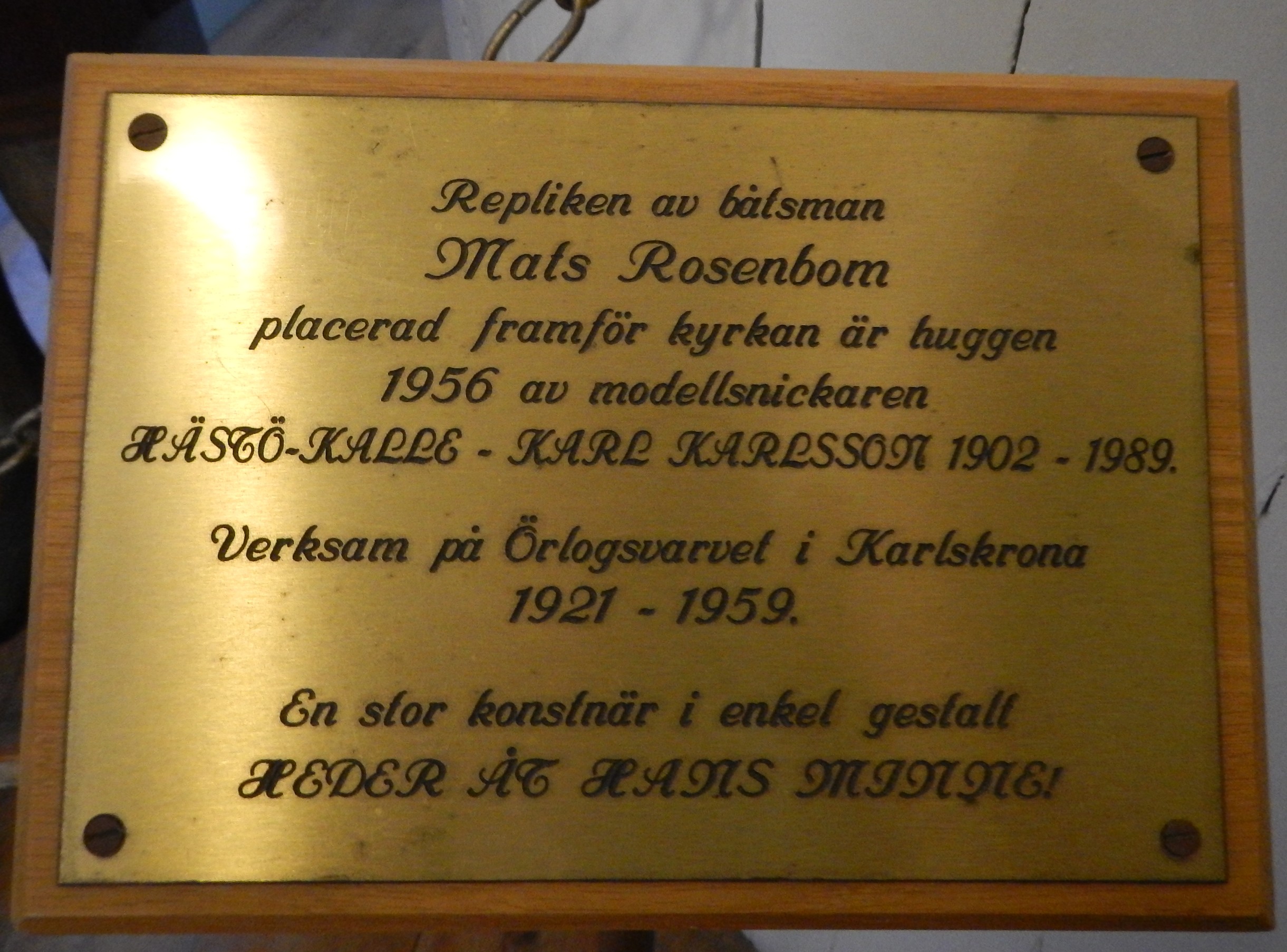 Att besöka Karlskrona utan en visit hos Rosenbom går inte för sig. Trägubben som är vida känd har även medverkat i såväl litteratur som film. Bland annat i Nils Holgersson. Stackarn har stått på samma ställe i snart 200 år, kom dit på 1700-talet. Detta är dock inte riktigt sant för 1956 byttes han ut med en kopia som är gjord av Karl (Hästö-Kalle) Karlsson och det är den kopian som syns på bilden ovan.