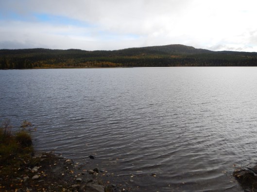 Framför oss ligger nu sjön Sannaren, en sjö jag besökt väldigt ofta. Lär finnas röding och öring i den men vi har aldrig provat att fiska där. Ej heller har jag badat visserligen är den lite långgrund eftersom det finns en otrolig massa finslipad småsten ett tiotal meter ut i sjön. Men den är säkert djup och kall. I kanten kan man se små fina släta stenar formade av tidens tand.