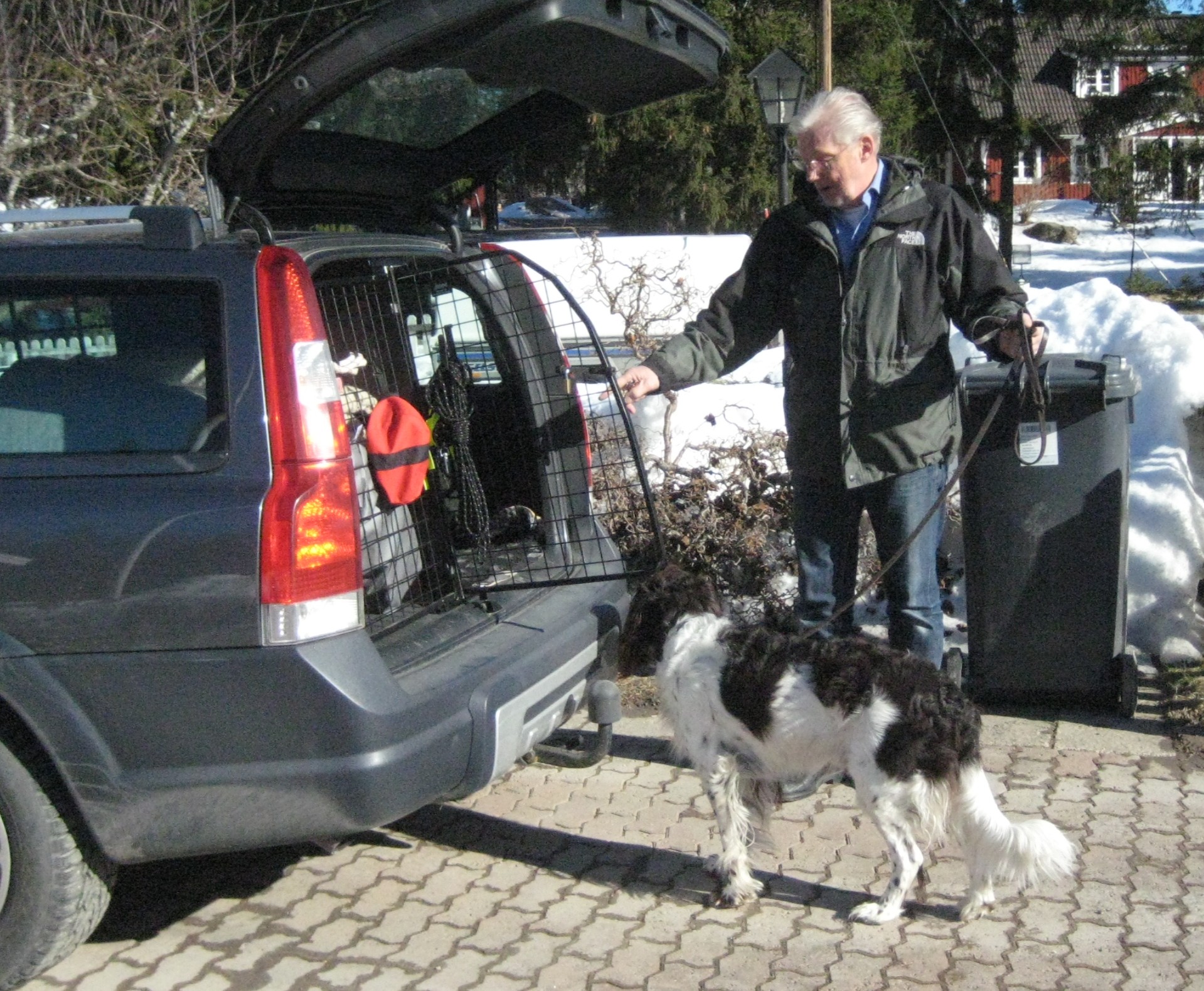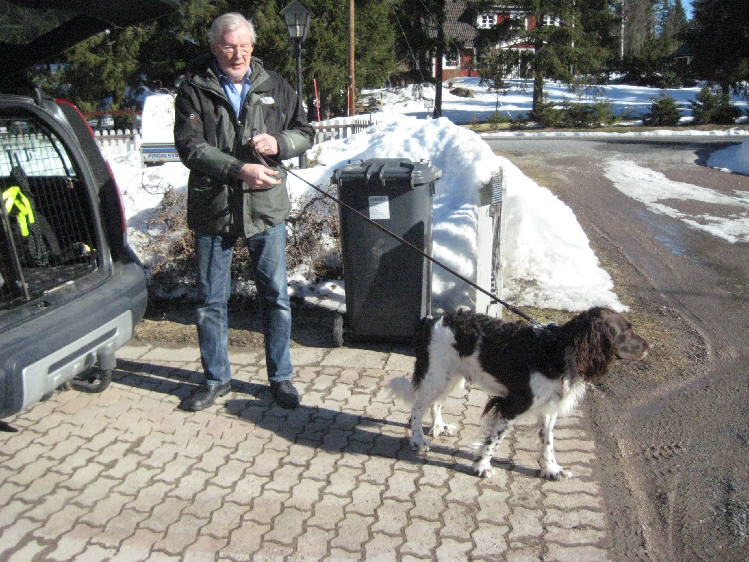 Husse tog över eftersom han har lite mer kraft i armarna och kan bestämma själv vart vi skall gå. Jodå, han gick mot bilen och trodde jag skulle hoppa in där men aldrig.