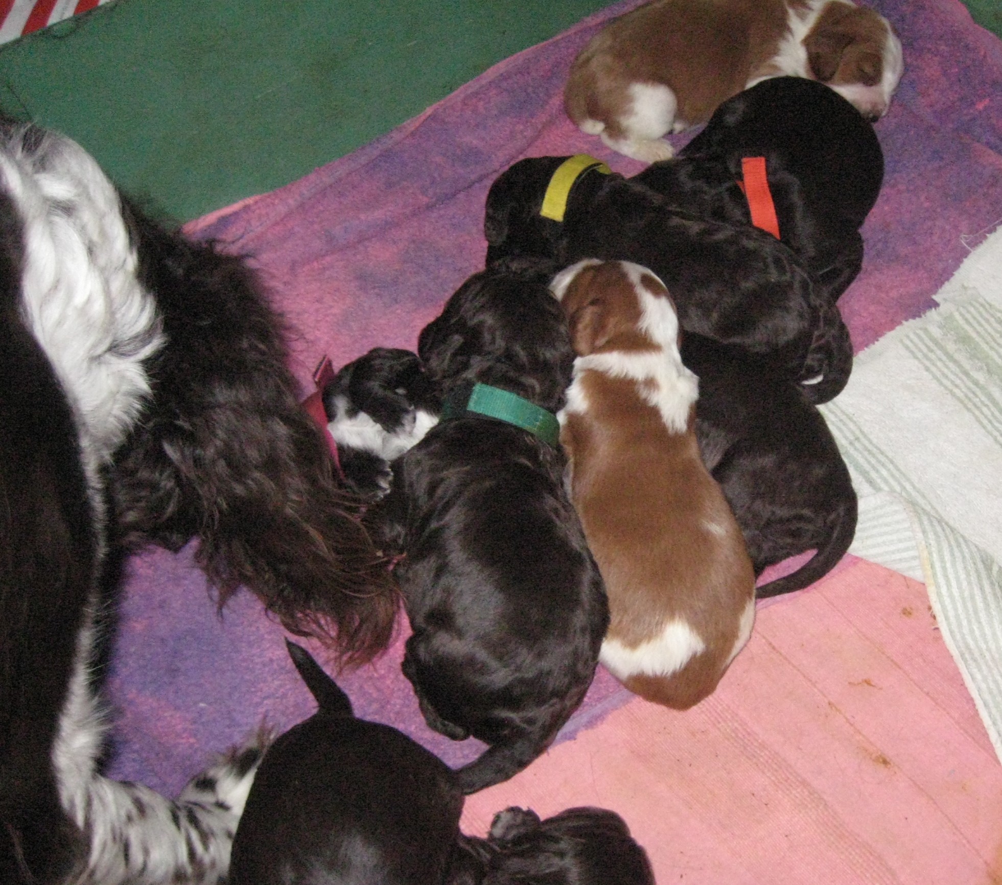 Jag hälsade plikttroget på dem, visst var de söta men de var så små att de inte kunde se. Bara att konstatera, här är en ny kull med wachtelvovvar som säkert kommer att bli lika bra jakthundar som sina äldre syskon. Men mig lurar dom inte, har nog fattat att här blir jag kvar ett tag, i synnerhet när husse tog in min säng. Fast varför inte, på bilden ser ni Nadja det är en förnäm liten Sheltyfröken och henne får jag dela rum med. Sämre kunde det varit.