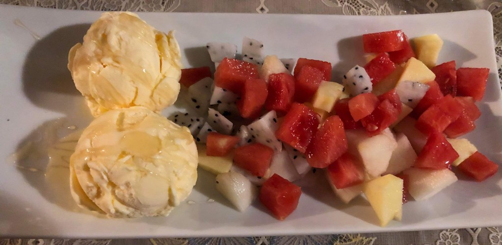Rolfs mellanmålsfavorit är våfflor med grädde och glass samt sylt. Ingen liten portion kan jag lova. Priset 100 THB och det är den värd.