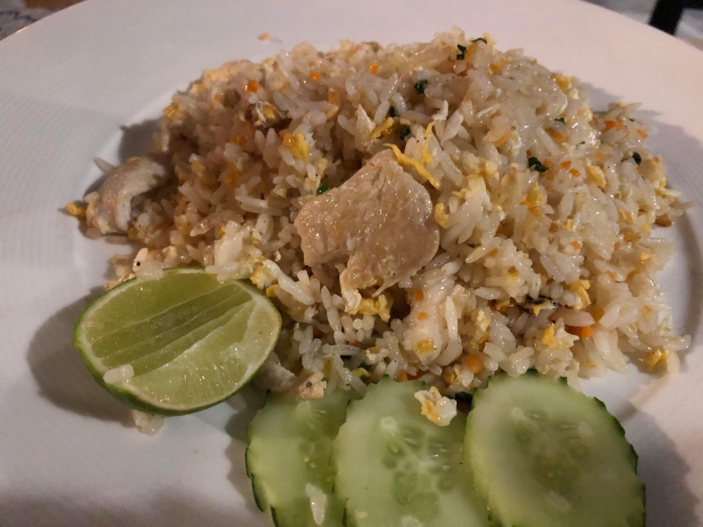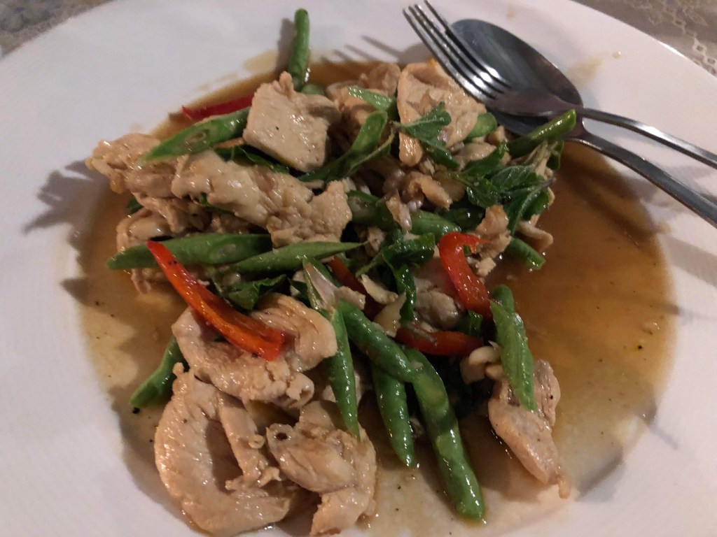 Restaurangerna i Huay Yang är inte så stora och därmed inte heller köken. Ibland frågar vi oss om de har mer är en kastrull. Skämt åsido maten man får är alltid nylagad det är dock inte säkert att ett middagssällskap på fyra personer får sin mat samtidigt. Vi har varit med om att en person har ätit färdigt innan de övriga fått sin. Det är inte heller ovanligt att man kan få vänta en timma på maten.