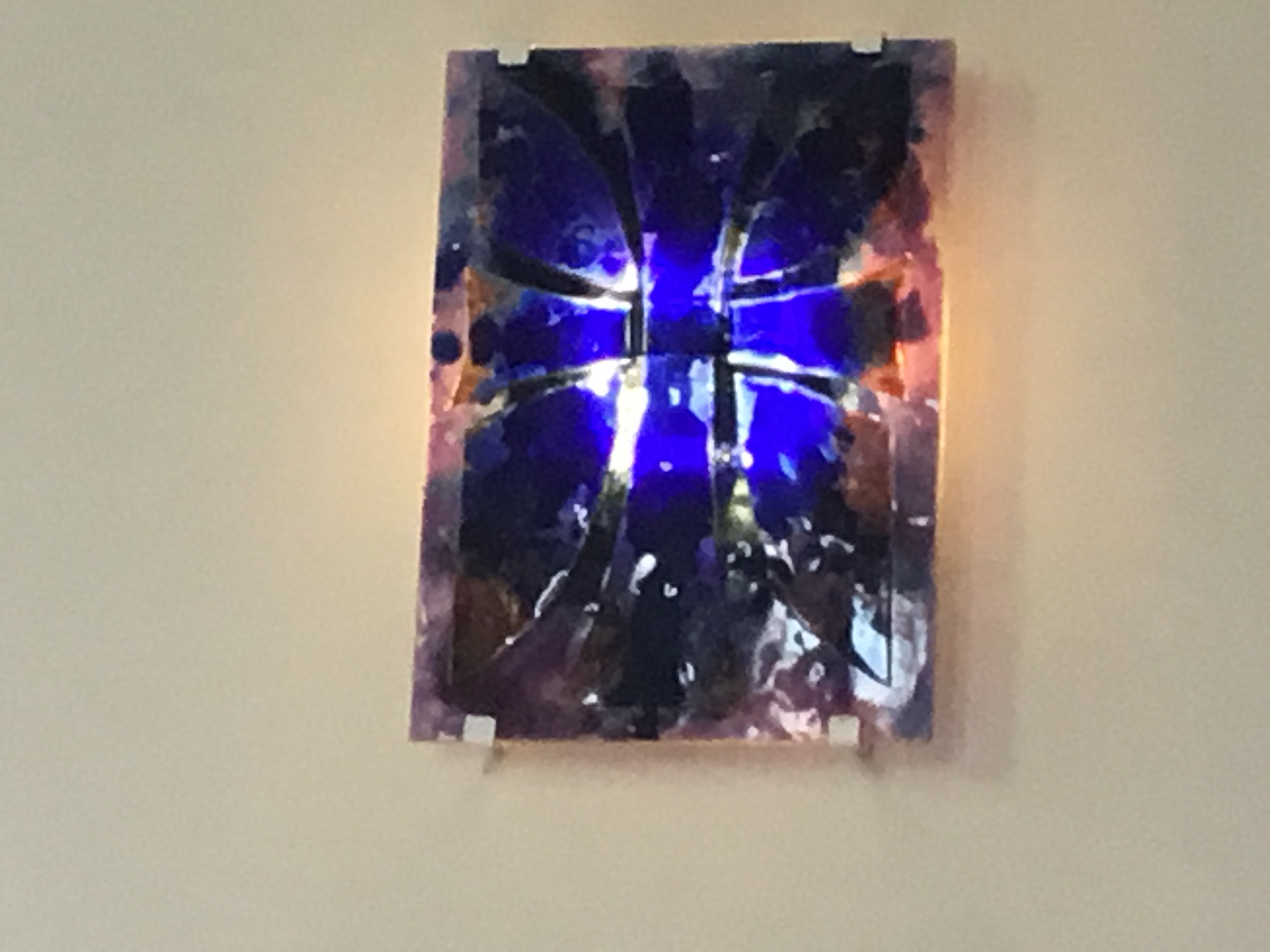På väggarna hänger det tolv glaslampetter som alla är utsmyckade med ett kors, det är samma antal lampetter som de tolv apostlarna.