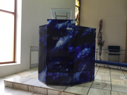 Predikstolen består av sju glasplattor liksom veckan har sju dagar. Man kan även hänvisa det till skapelseberättelsen då jorden skapades på sju dagar.