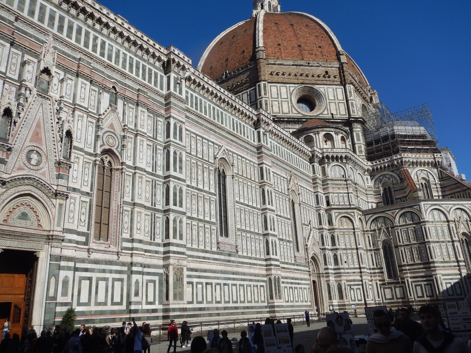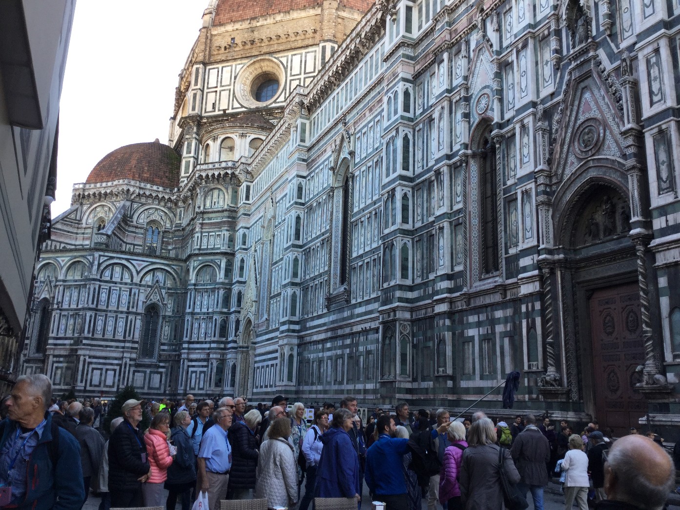 Naturligtvis tittade vi även på Florens stolthet den stora domen eller Basilica di Santa Maria eller Heliga Marias blommas basilika. Kärt barn har många namn. Man tror att namnet anspelar på den blomsterlilja som är Florens symbol, blommornas förebild lär vara Irisliljan.