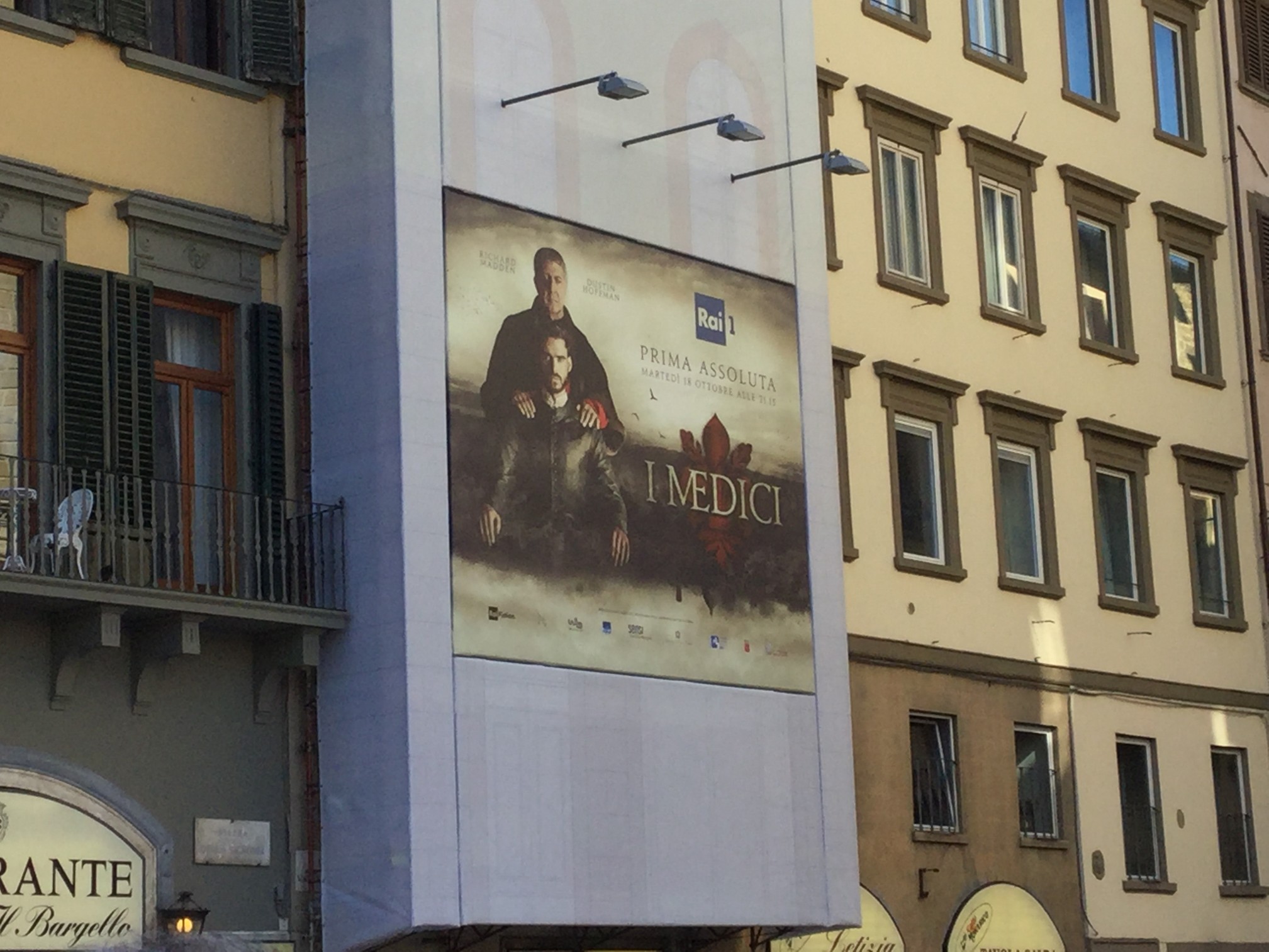 En ny TV-serie har spelats in och började sändas i Italien i september i år. Det är bland andra Dustin Hoffman som har en huvudroll. Den heter Master of Florens och handlar om familjen Medicis historia. Handling, en politisk, familjedrama i början av 15-talet. Fadern Giovanni dies Cosimo de ‘Medici befinner sig vid rodret för sin ytterst rika, bank dynasti familj, när hans far dör Giovanni plötsligt.