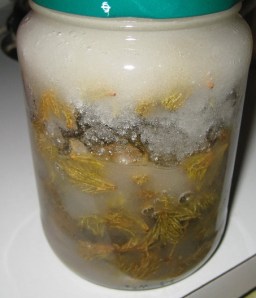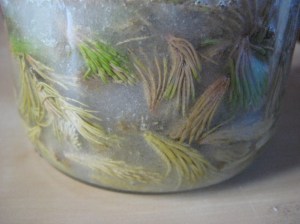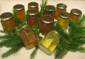 Man ska ju inte låta mat förfaras men det finns ju fler granar i skogen så det är väl ok. Granskotten för i år är ju redan nertagna och av dem blir det granskottssirap, granskottsmarmelad, syltade granskott ja man kan t.o.m. smörsteka dem. Det senare har jag aldrig provat får en känsla av att barren kommer att sticka mig i halsen. Så tänk på det när ni tittar på alla julgranar att där står ett träd fullt av nyttiga C vitaminer.
