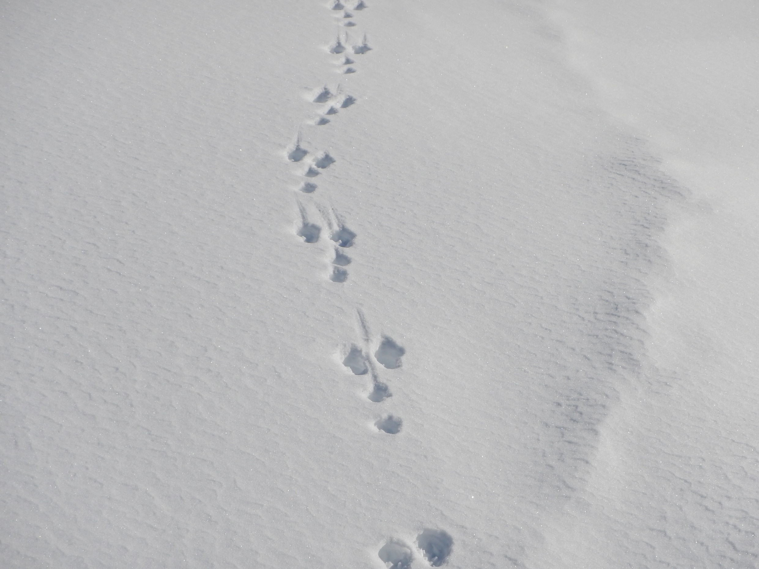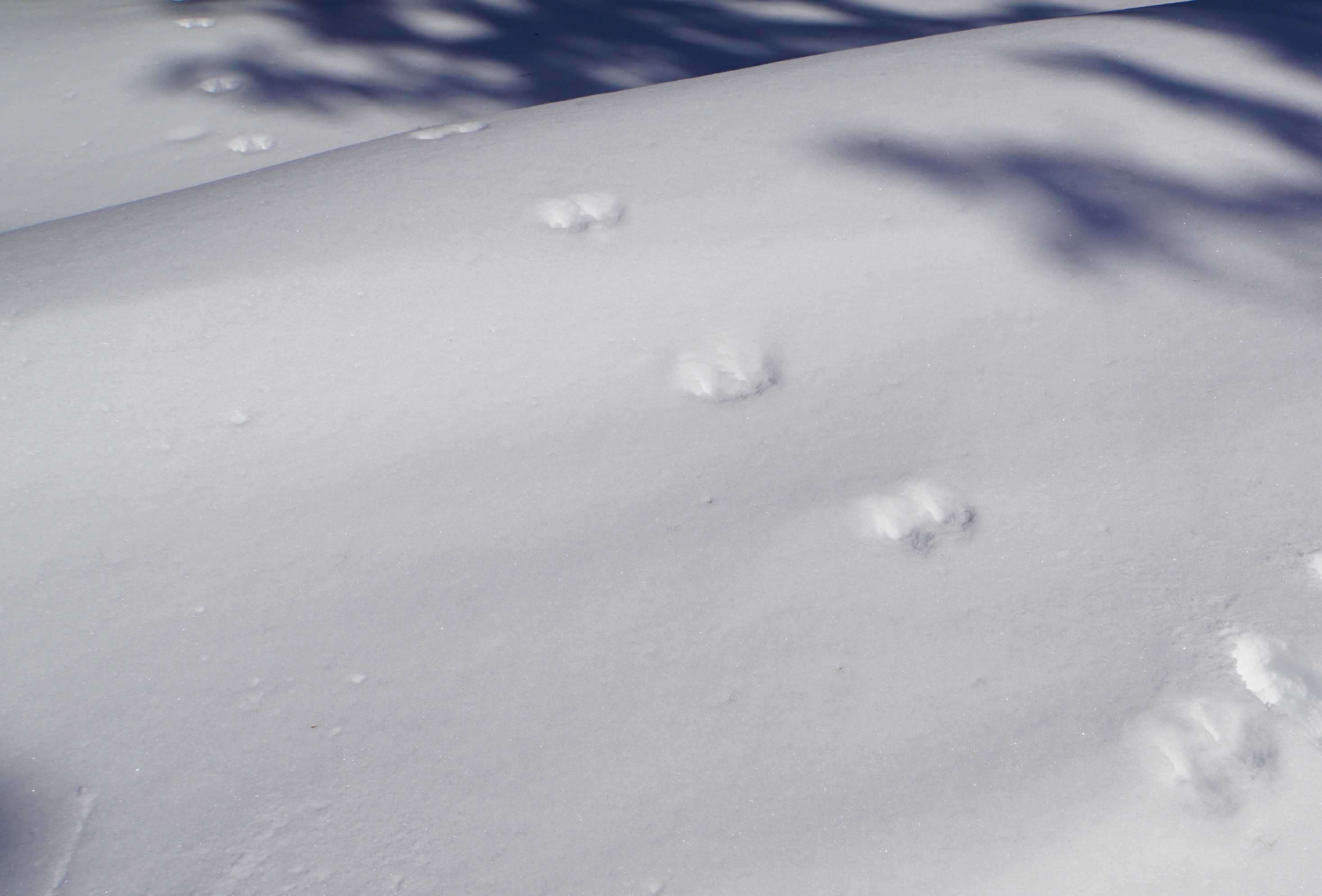 Här vågar jag nog säga att det är spår efter en räv. Med tanke på att det finns en del spår lär det finnas några här. På sommaren kan man se en och annan men nu syns endast spåren.