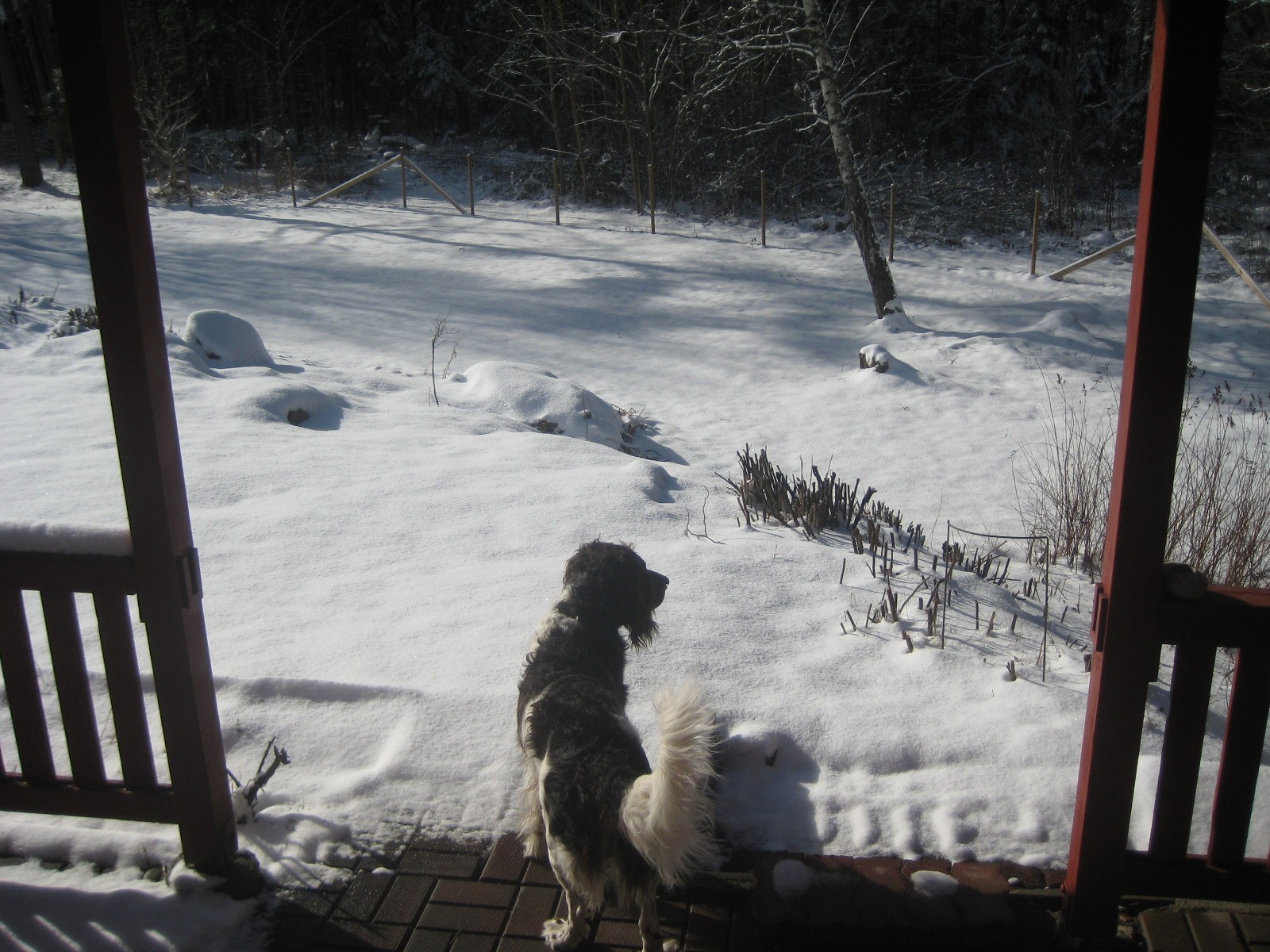 Hunden tycks gnola på den gamla låten av Ove Thörnqvist, ändrat texten lite förstås. Nog såg han lite förundrad ut när han kom ut på morgonen idag.