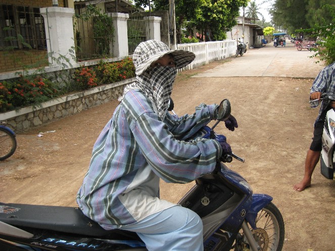 Vi åkte en sväng på motorcykeln, varje gång tänker jag, det är tur att man inte får en kokosnöt i huvudet, de sitter ju i stora klasar uppe vid palmtoppen.