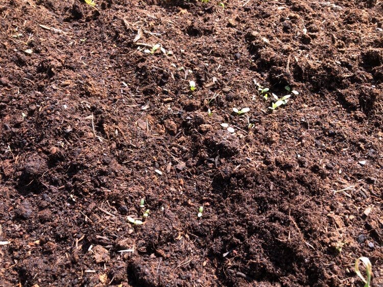 Efter ytterligare en vecka ser det ut så här på planteringsplättarna efter vägen. Några frön har börjat gro.