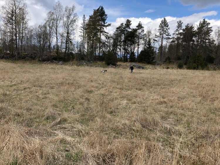 Det blev så att säga hunden efter katten och Rolf efter hunden men jag stannade på vägen. Efter ett tag möttes de två och en modstulen hund och en lite irriterad husse höll rekommenderat avstånd mellan varandra när de gick tillbaka.