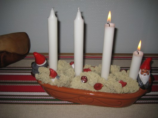 Idag firar vi 2:a advent, fortfarande ingen snö i sikte men vi har ju lite tid på oss. Rolf och hunden är ute och letar efter en lämplig gran, skall dock inte tas ner förrän närmare jul. Det brukar vara ett säkert kort för att få snö, när det är dags att hämta granen brukar det vara så snötyngt på träden, att det blir en överraskning om det är rätt gran.