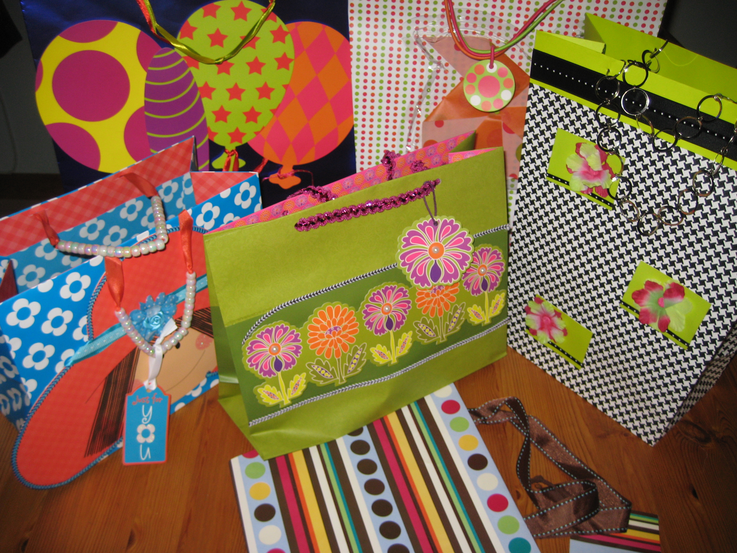 Födelsedagar firas ju även i december, så idag tog jag fram en presentpåse jag fick av min syster o systerdotter. Påsarna är inköpta i USA och jag fotade några, visst är de härliga? Man blir glad av dem.