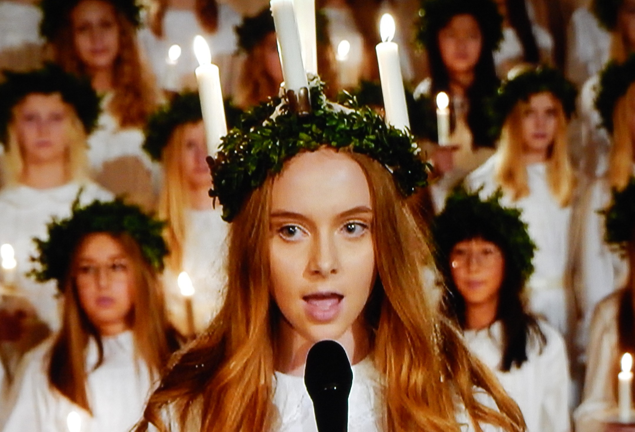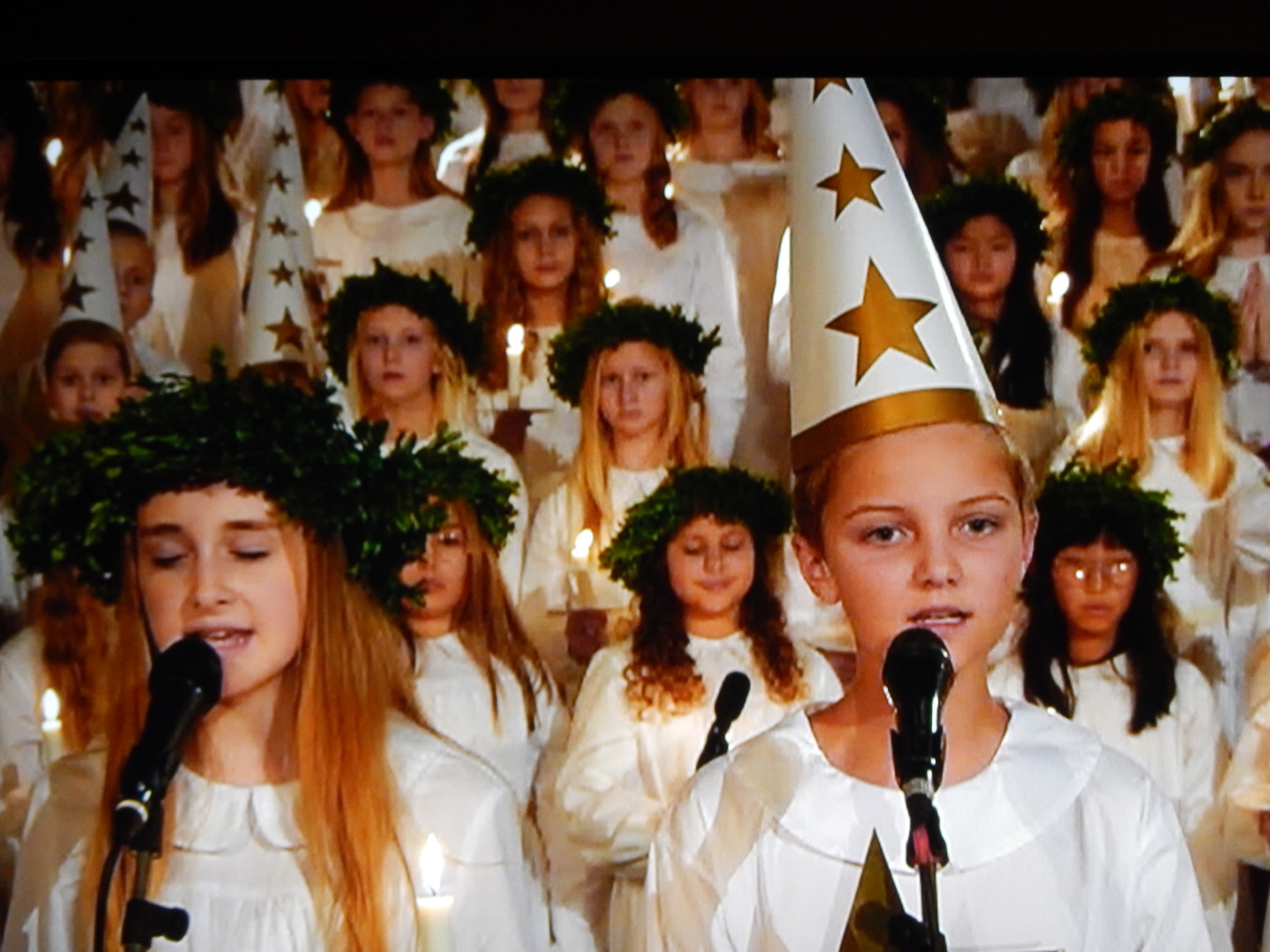 För några år sedan uppvaktades några av nobelpristagarna av en Lucia och hennes tärnor. Många av dem blev helt skräckslagna när de kom in i deras rum på morgonen. I dag hörde jag även av en person i radion att han och några till hade försökt överraska några i USA en luciamorgonen. Det föll inte i god jord att dyka upp på morgonen i lång vit klänning o strut, de blev utskällda och var tvungna att springa därifrån. Ja det gäller att berätta om de svenska traditionerna innan man utsätter folk från andra länder för dem. Ett högtidligt firande är det dock