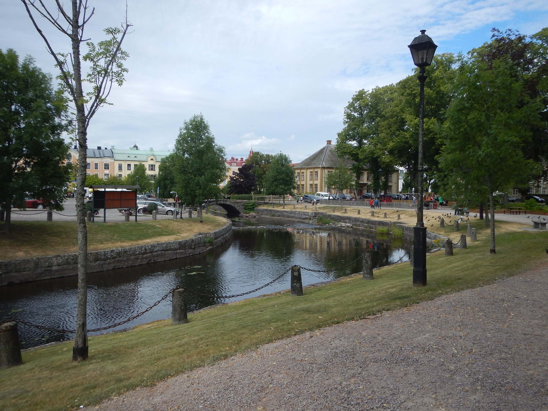 Eftersom vi har ett barnbarn i Åmål tänkte vi passa på att besöka den lilla staden, nog har man hört dess namn ibland men har ändå aldrig varit där. Det enda jag visste var att den var belägen i Dalsland i Västra Götaland och ligger precis vid stranden av den norra delen av Vänern. Med andra ord den verkar ha allt för att vara en vacker sommarstad. Det finns en hel del historia att ta del av, nu lärde jag mig att Åmål förr stavades Åmoll och ännu längre tillbaka var det Amordh. Den blev stad 1643 men på senare år det vill säga 1901 brann stora delar av staden upp, den norra delen. Som tur var delas staden på mitten av Åmålsån vilket antagligen räddade en del av bebyggelsen. Staden är inte stor men verkar ha en förfärlig aktivitet åtminstone sommartid. Det är bokmässor, bluesfestival i fyra dagar, utställningar, konserter ja hur mycket som helst. Nästan så man kände lite avundsjuka.