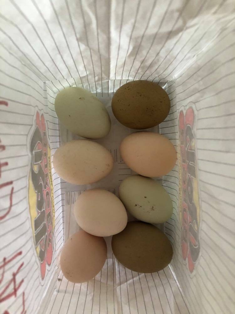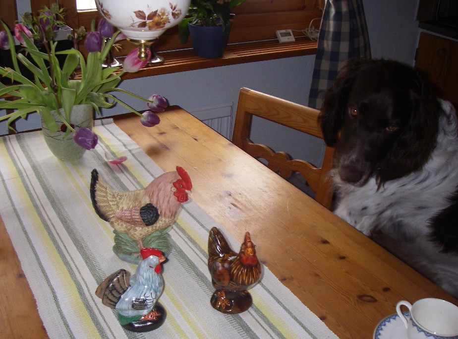 Påskäggen har däremot anlänt, de stod på bordet utanför dörren idag. I det här fallet vet jag dock var den här påskfabrorn bor, det är lite längre ner på vår väg. Tycker de här äggen är så fina dels i färgerna och dels för att men vet att hönsen bor så bra. Sparar dessutom in tid när de redan har olika fina naturfärger. Hönsen har dessutom säkerhetsnät mot såväl rävar som pilgrimsfalkar.
