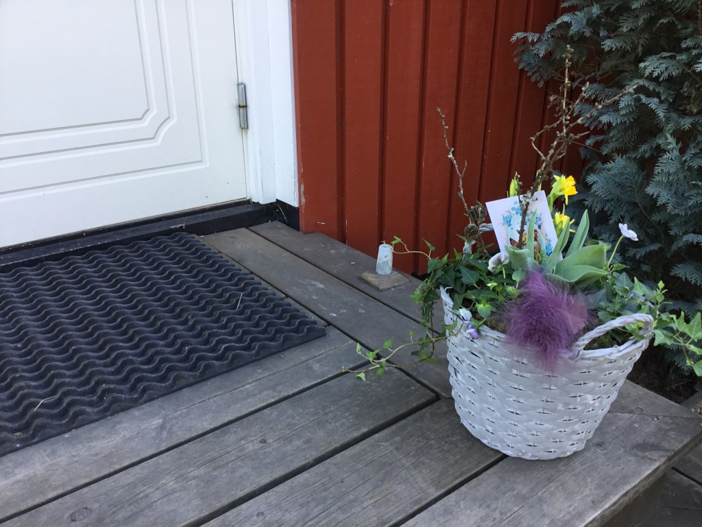 Påskveckan har ju börjat bra, för någon dag sedan stod den här vackra blomsterkorgen på trappan. En kombinerad födelsedag/ påskhälsning. Visst är det härligt när sådant här händer, precis vad man mår bra av i dessa tider.