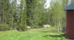 Som vanligt mötte vi renar på vägen hem, den här gången var de hyggliga nog att hålla sig på en sida av vägen.