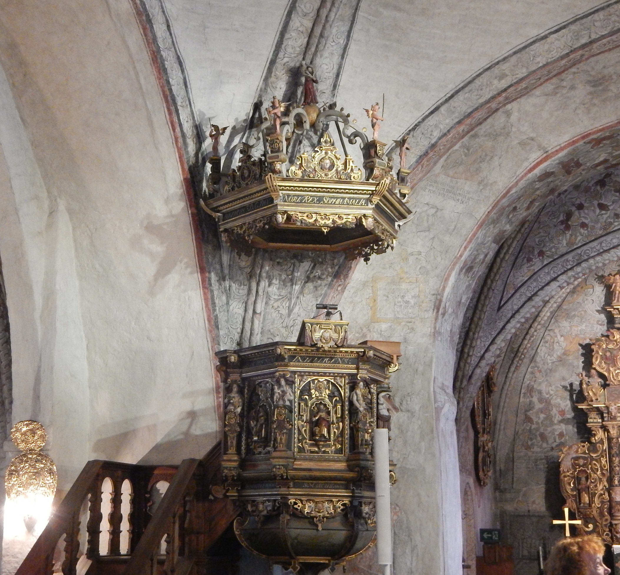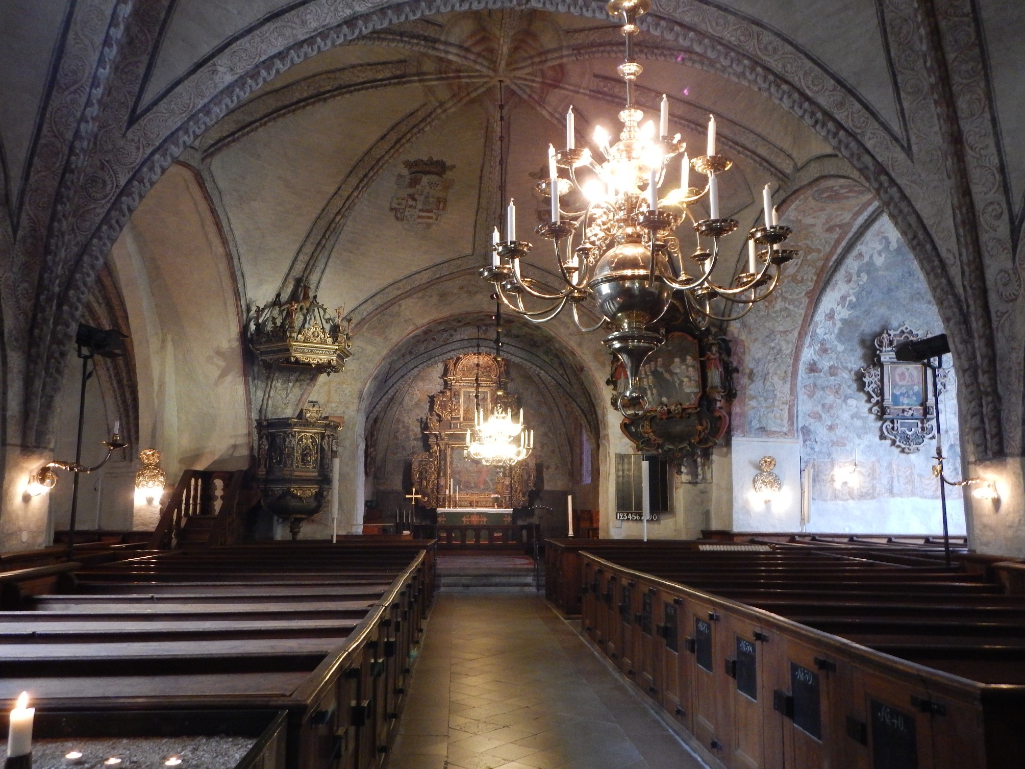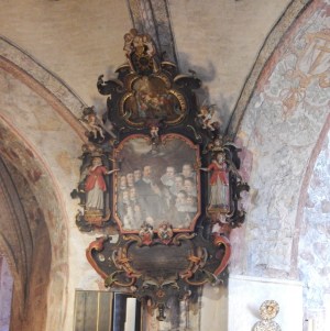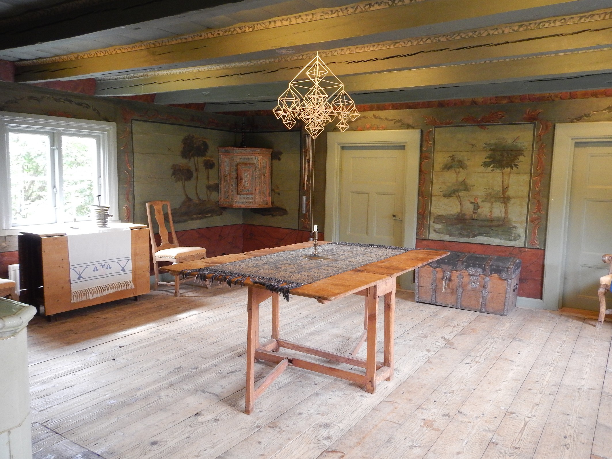 I den här salen fanns det väggmålningar. De är gjorda direkt på träväggarna, fantastiska landskapsmotiv som nu har restaurerats av konstnären Ture Wahlström från Karlshamn.