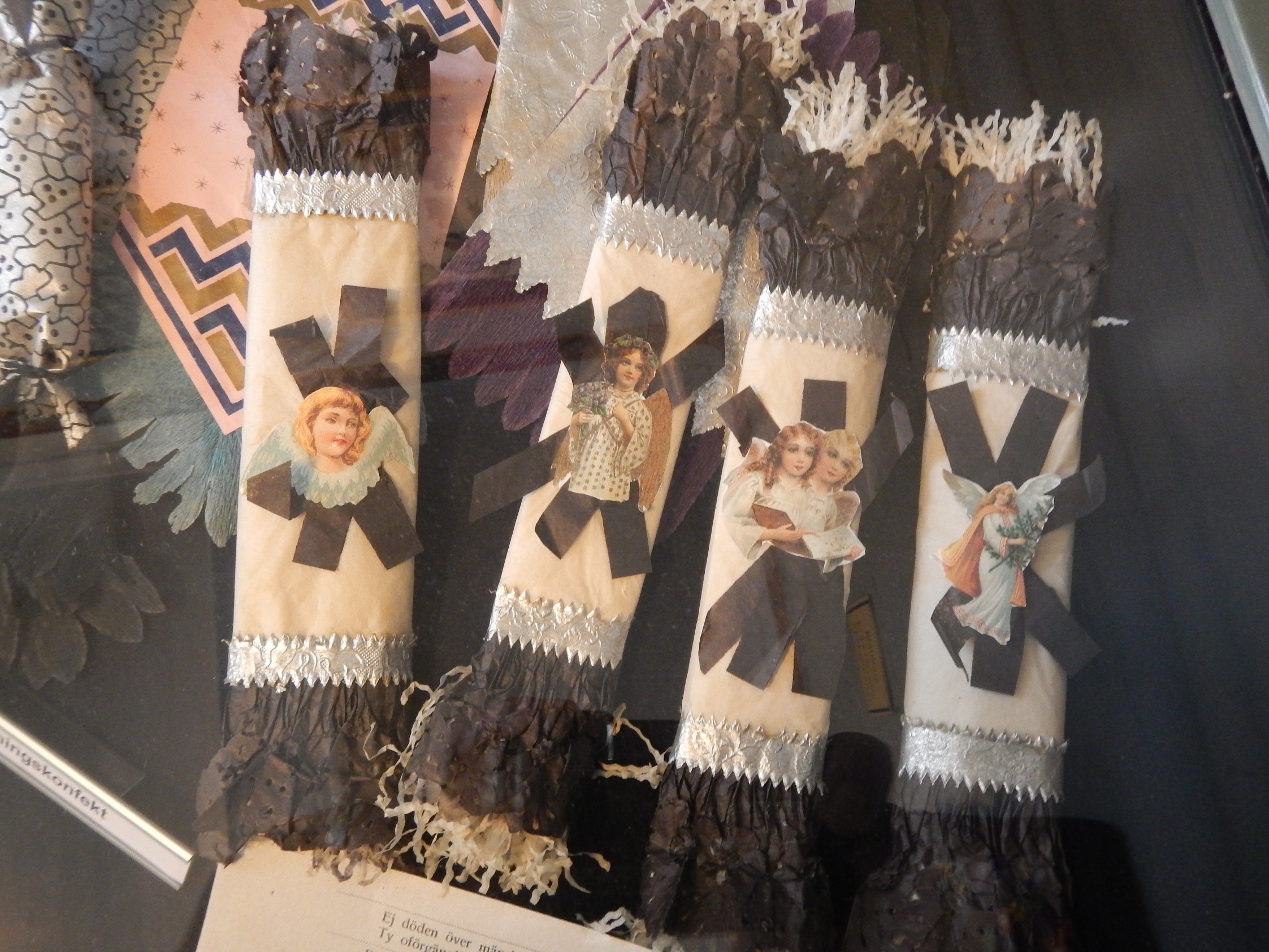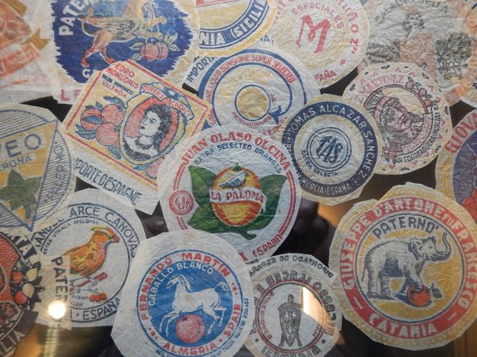 På första våningen finns en liten museishop och ett par utställningsrum. De var verkligen roliga att se, för man blev påmind om många saker man minns från sin barndom. Minns ni etiketterna ovan, det är de tunna o skira papperen som låg om apelsinerna. Tänk jag hade redan glömt att apelsiner kom så fint förpackade.