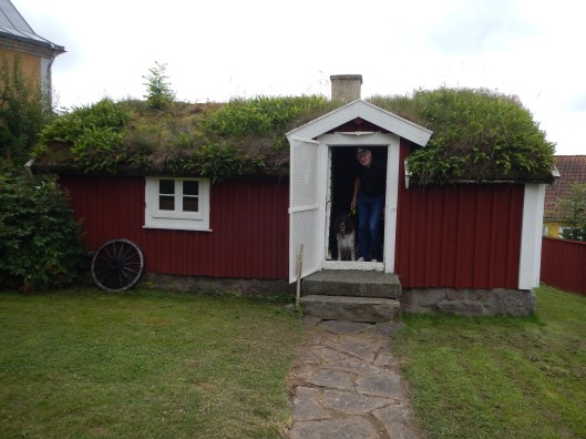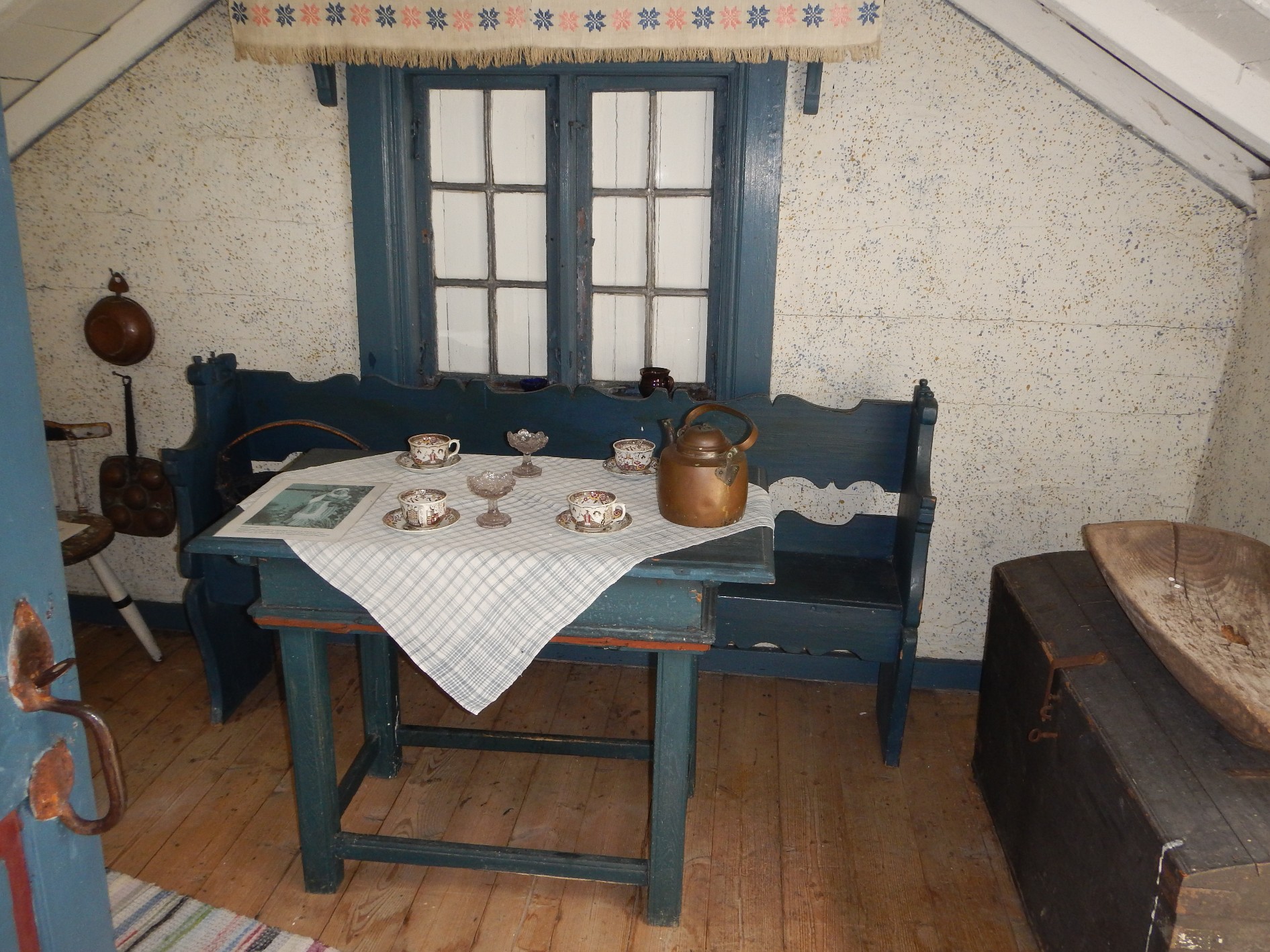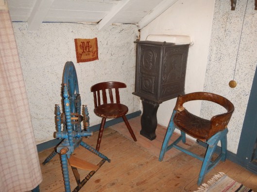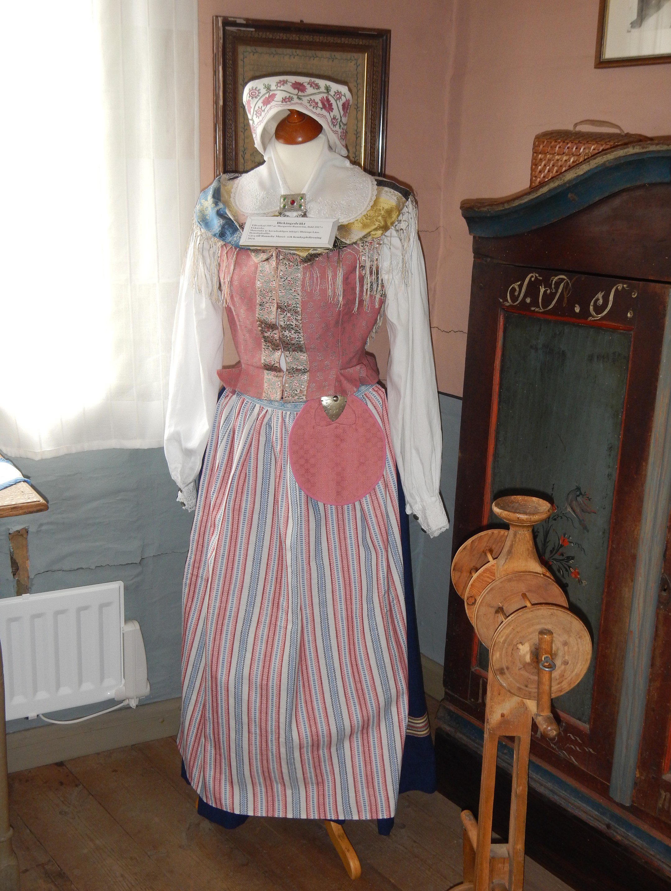 I den ena trappans avsatts fanns denna Blekingedräkt och den får bli avslutningen av vår vandring i Möllebackagården. Skulle jag visa alla mina bilder skulle ni nog slutat ganska snabbt att se dem, men nu vet ni att är man i Ronneby måste man titta in på Möllebackagården.