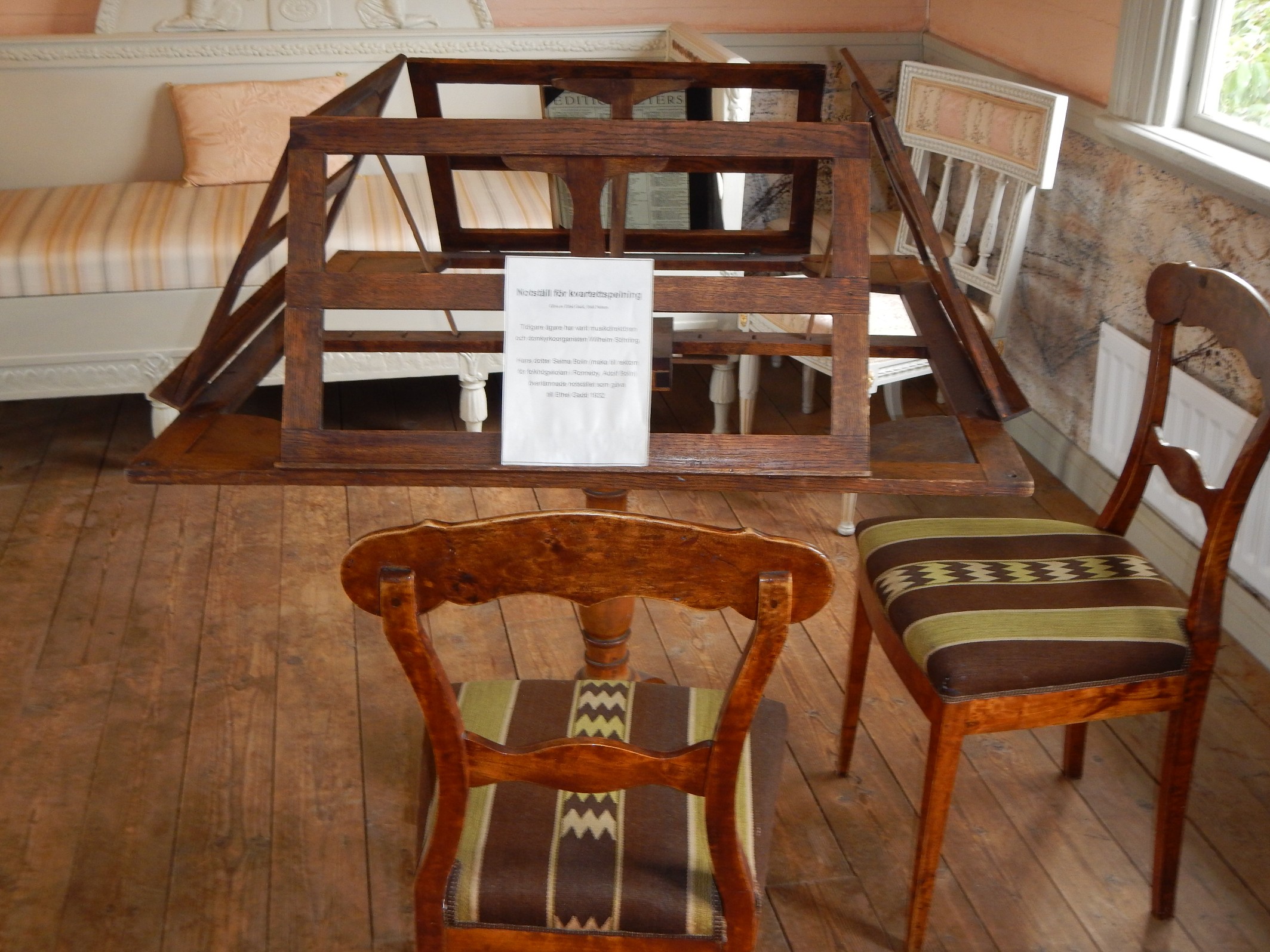 På ovanvåningen möttes vi av ett musikrum, där stod ett notställ för en kvartett. Undrar om man har sådana idag?
