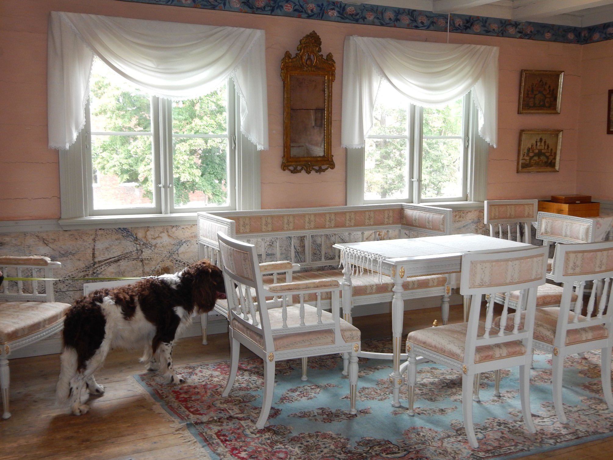 Här är det ”rosa rummet” som har en läcker färgsättning och är ljust färgsatt i vitt o rosa. Kan tänka mig en eftermiddagsfika där och jag tror att även hunden tyckte det var OK.