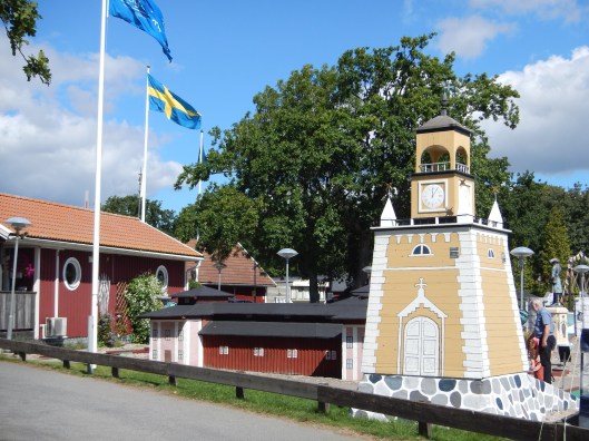 Vi avslutade dagens promenad som har gått tvärsigenom staden och kom ut till havet igen. Där ligger det vackra landshövdingsresidenset och man kan se klockstapeln på håll. I detta residens har för övrigt men gamla chef Björn von Heland bott i sin ungdom, då hans pappa var landshövding i Blekinge. Jag börjar nog bli gammal för även det kommer jag ihåg.