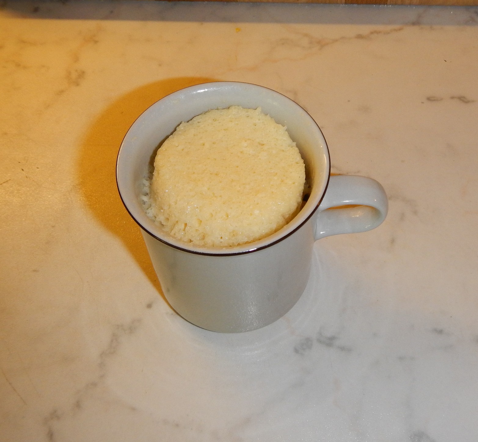 Värt att prova om man befinner sig på något ställe där det inte finns någon ugn. Mugcake, bakas i mikron i en vanlig kopp. Kakan är av typ sockerkaka med limesmak, blanda innehållet med sex matskedar mjölk, rör om och häll i en kopp. En minut i mikron så är det klart.