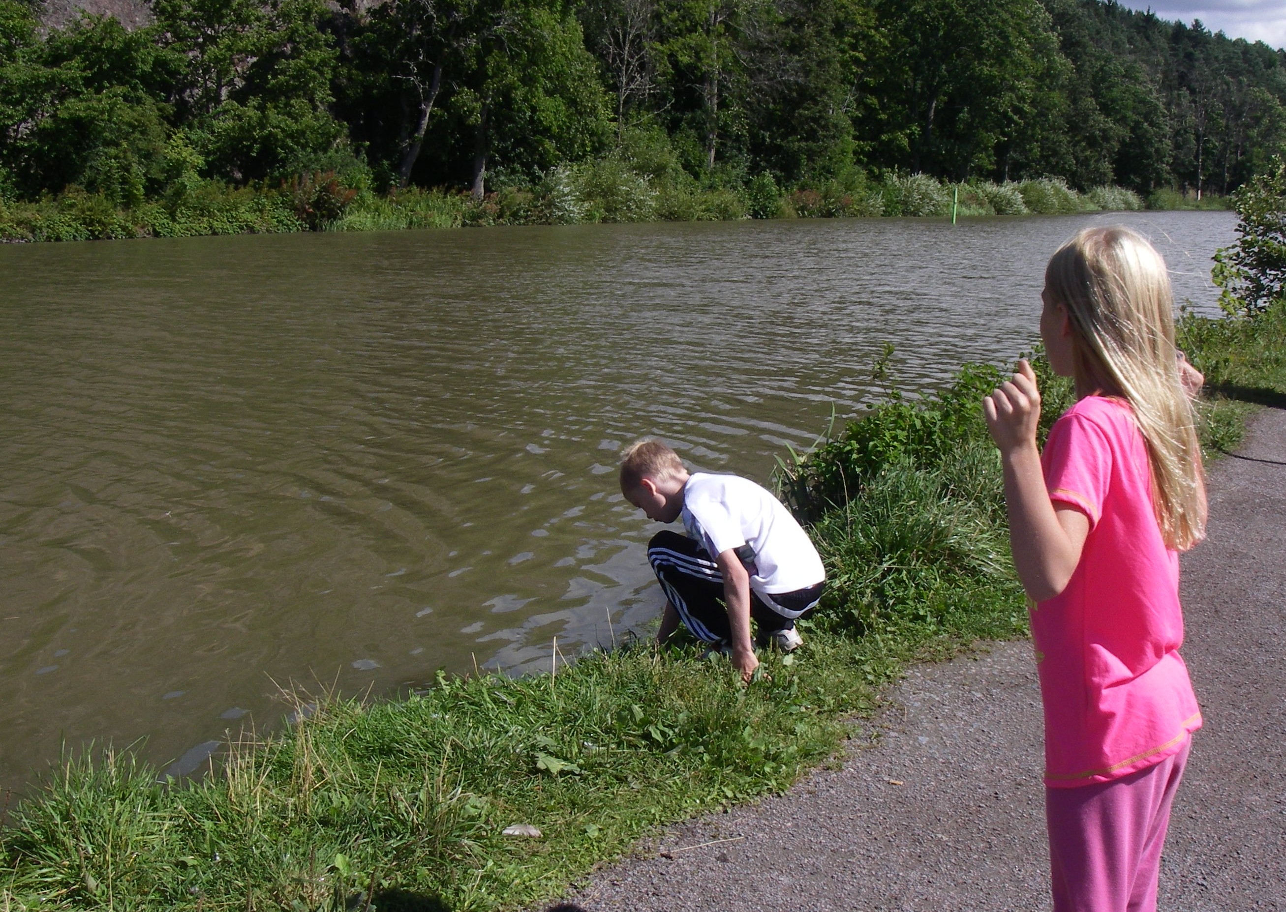 Något som är roligt att se på är slussöppningen, Vanna var så inne i det att hon inte tänkte på att hon stod på själva slussporten. Det blev en lite sväng över kanalen tillsammans med ”slussöppnaren”.
