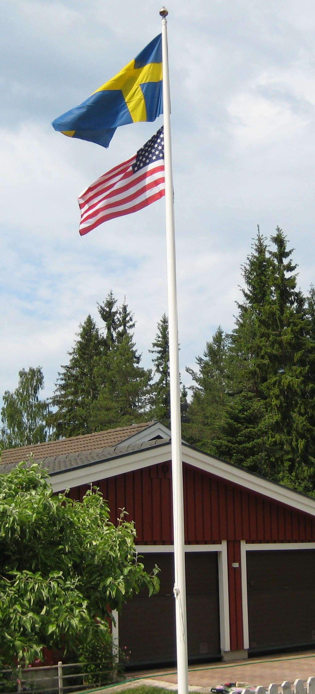 Eftersom jag har fått de här tomtarna av min syster som bor i USA är det väl inte mer än rätt att Santa får vara med på egen bild. Står lite pompös med Stjärnbaneret eller Stars and Stripes som den heter. Baneret med de tretton ränderna som symboliserar de ursprungliga delstaterna och de femtio stjärnorna som symboliserar de nuvarande delstaterna (tror jag).