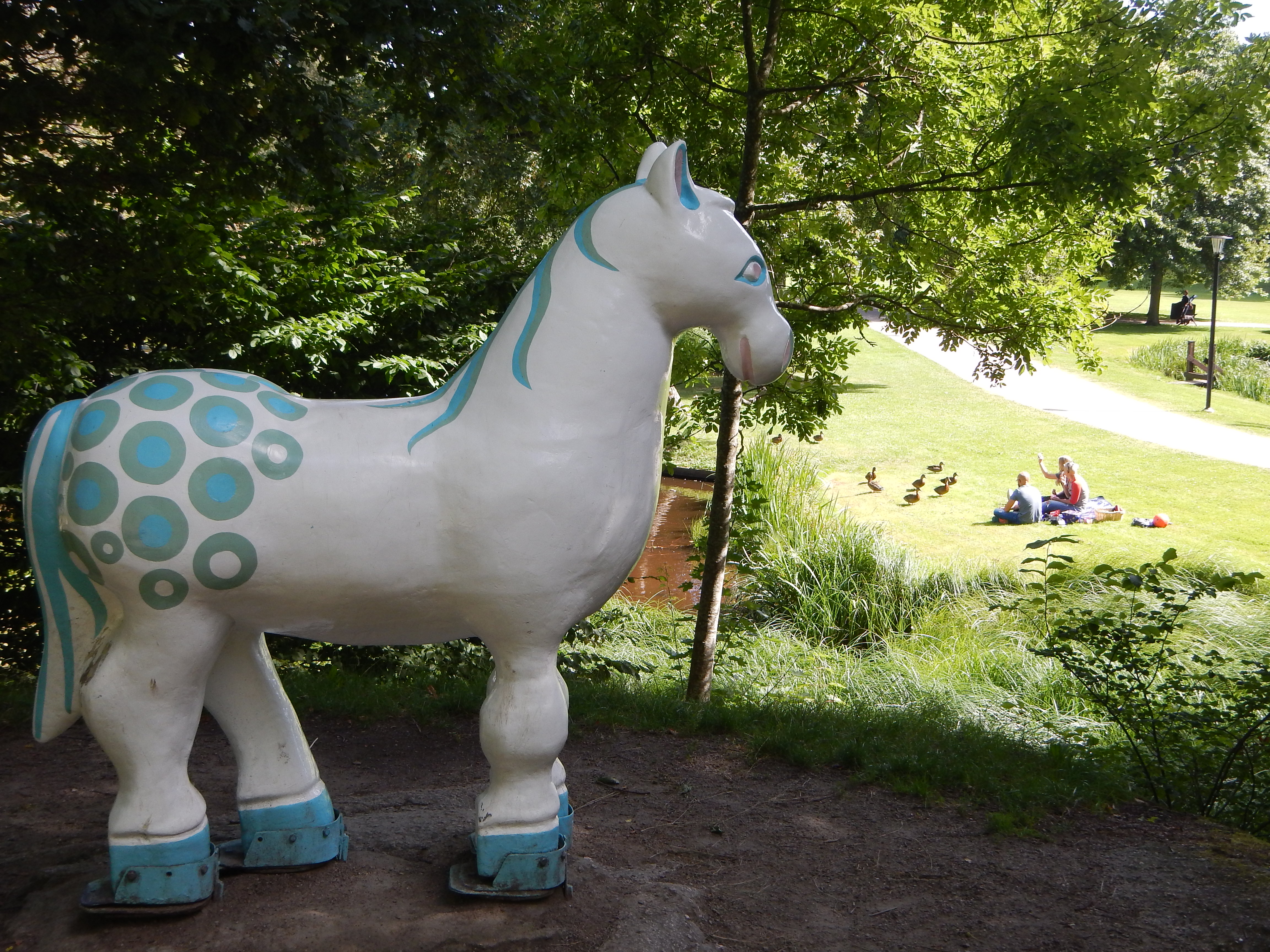 Helt plötsligt gick vi på en stor häst, lite nyfiken på varför den stod där blev jag ju. Så här står det på informationen om hästen på internet. ”Man sa att Bäckahästen var ett lömskt rovdjur som lurade barnen att rida på dess rygg för att sedan dra ned dem i vattnet. Barnen tycker att den är så fin att de vill rida på den. Ryggen blev bara längre ju fler barn som red på den. Om man vill hindra en bäckahäst att dränka barnen skall man kasta en bit stål mellan hästen och vattnet. Då kan hästen inte gå den vägen, och dess makt är bruten”.