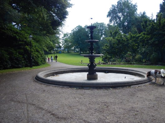 Hunden var inte sämre han men föredrog att dricka det från dammen.