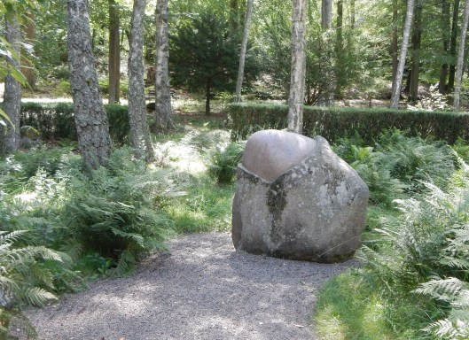 I den vackra skogen/parken finns det många vägar att välja på, vi valde en 3 km och fick då se en hel del vackra ting. En något ovanlig sten, japansk trädgård, dammar, skulpterad troll, blåa enorma hortensior och mycket mer.