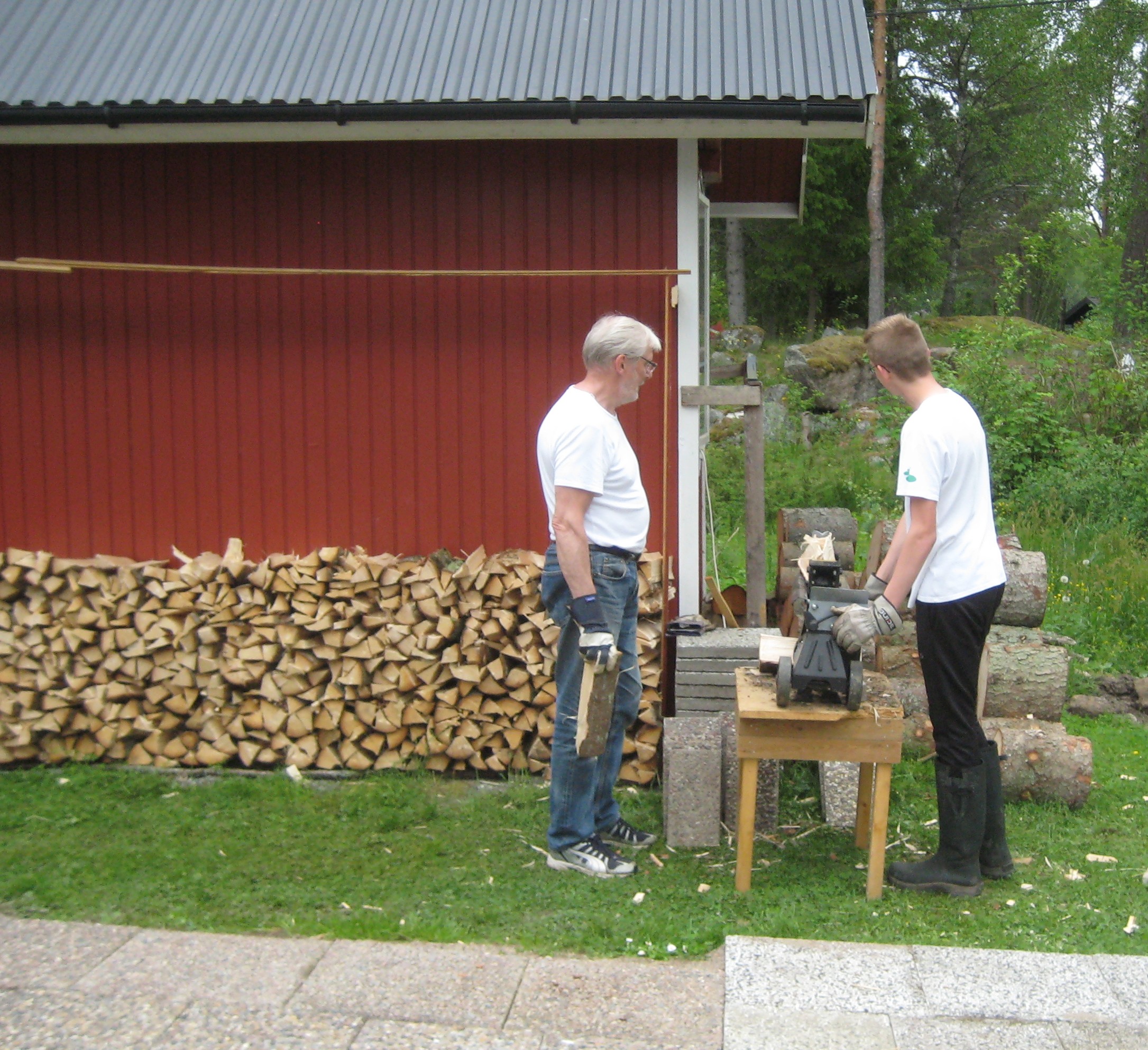 Efter flera månader med regn, dis o dimma så visade termometern på – 5 grader C på morgonen. Då vet man att det blir en brasa i öppna spisen framåt eftermiddagen. Det är dock inga problem med det eftersom lagret med ved knappast har rörts i höst. I år hade vi hjälp med vedklyvning av två barnbarn och då blev det snyggt staplat också. Eller stapplat som jag säger med min dialekt och till Rolfs förtvivlan.