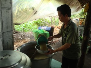Den röda uppe i högra hörnet är Drakfrukt på thailändska Gaehwmanggorn. Det är egentligen en kaktusväxt och härstammar från Mexiko och Sydamerika men odlas numera i Asien. Vanligast lär den vara i Vietnam. Det är en väldigt vacker frukt med det intensiva röda skalet med små grön smala blad som växer uppåt. Även de stora vita blommorna är kända för att vara vackra, dessutom doftar de gott. De blommar faktiskt på nätterna precis som Nattens drottning lär göra.