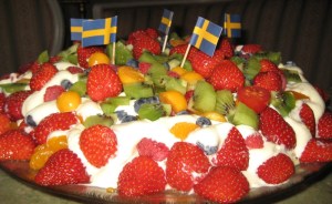 Koka upp 6 dl vatten med 2 msk potatismjöl, låt det svalna riktigt. Pressa 3-4 apelsiner till 2,5 dl juice samt skär 2 apelsiner i skivor som halveras. Vispa ner juicen i vattnet och lägg i fruktköttet, smaka av med en halv matsked strösocker. Läskande och god vitaminbomb.