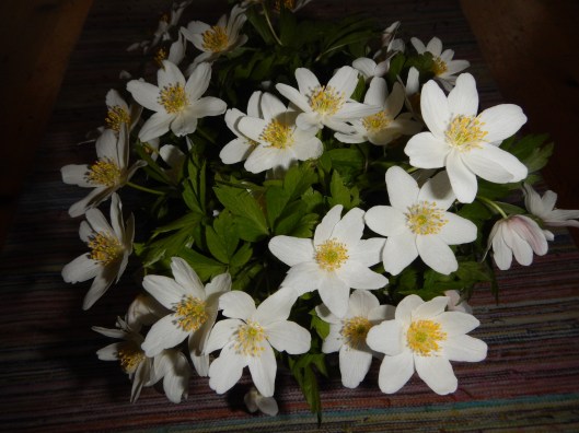 Detta är vad vi ser varje dag och det är en förmån att få uppleva hur vårens blomning lyser upp naturen allteftersom tiden går. Idag såg jag även en liten skogsmus men den såg mig också så den försvann illa kvickt.